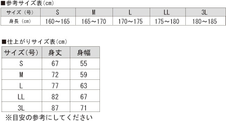 L(身長170~175cm、身丈77cm,身幅63cm)