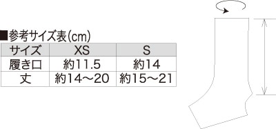 XS(小学校低学年用)履き口約11.5cm、丈14~20cm
